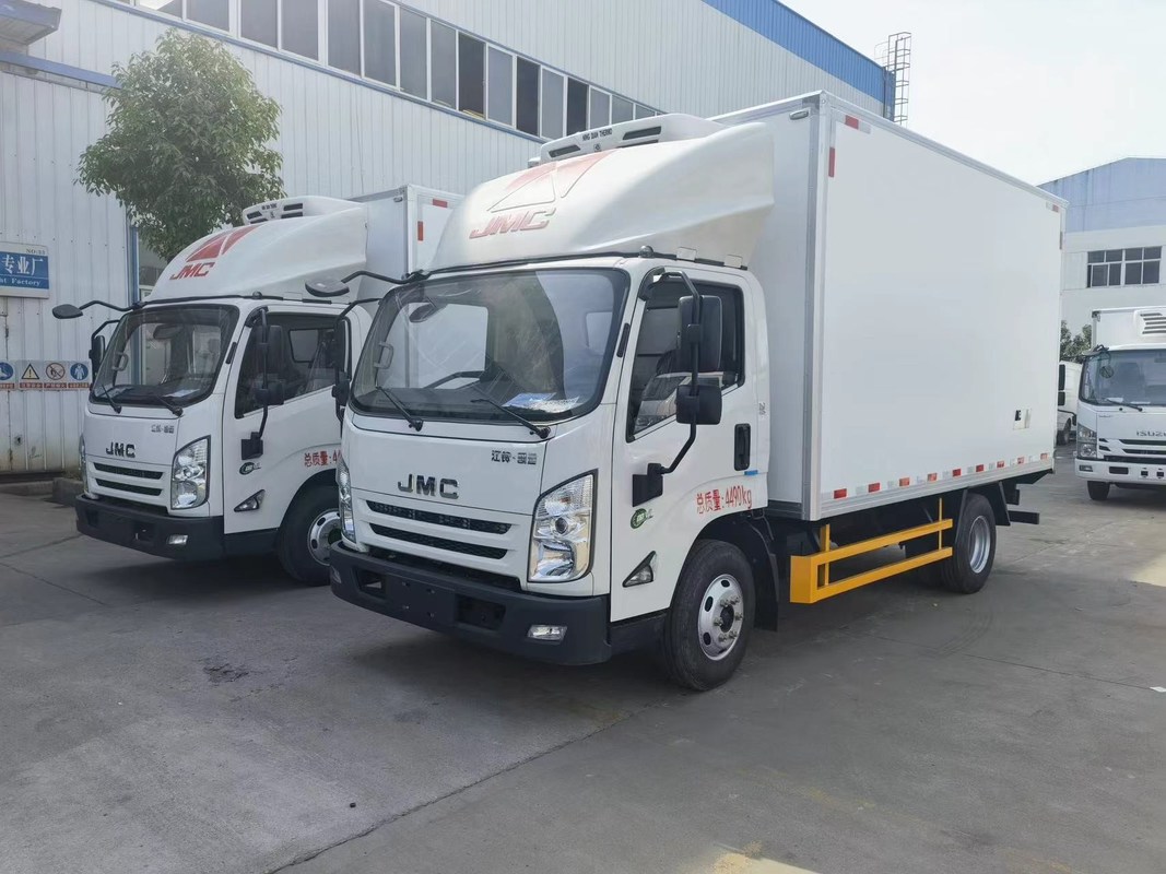 Der Kühlfahrzeug besteht aus dem laufenden Teil des Lkw-Chassis und der Wärmedämmungskarosserie (in der Regel aus Polyurethan, Glasstahl, Farbstahlplatte,aus rostfreiem Stahl, etc.), Kühlgerät, Innenraumtemperaturmessgerät und andere Komponenten.