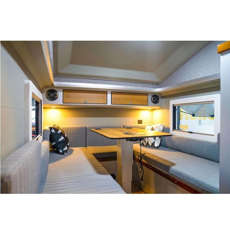 야영자 트레일러는 특별히 야외 모터 홈 진행을 위해 설계됩니다. 그것은 근대적 디자인, 경량의 환경적 보호된 재료, 진보적 가구, 완전한 삶, 오락, 주방과 세척 설비와 함께 있습니다. 선택적이 더 큰 스페이스 내부를 만들기 위해, 연장을 측면을 댑니다. 그것은 야외 모터 홈 진행을 위한 당신의 최상의 선택입니다.